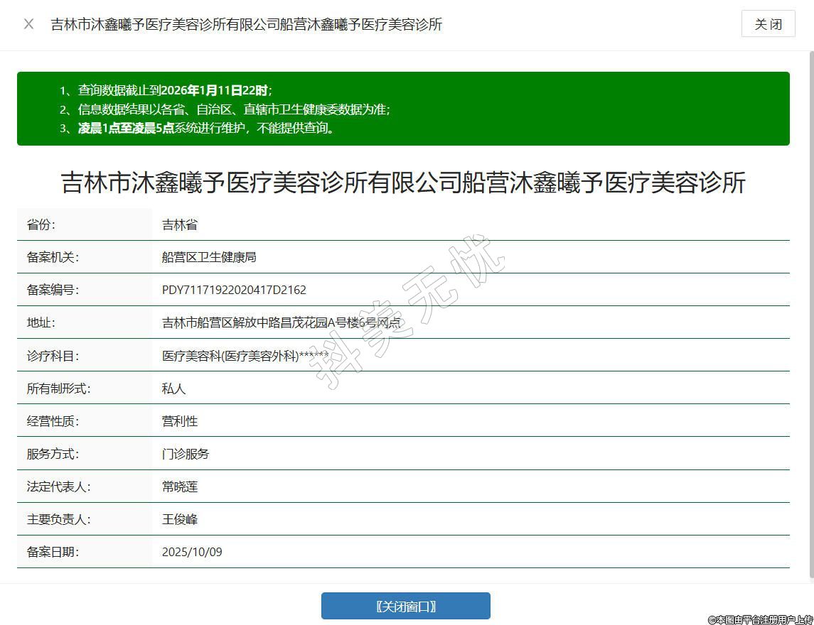 吉林市沐鑫曦予醫(yī)療美容診所有限公司船營沐鑫曦予醫(yī)療美容診所