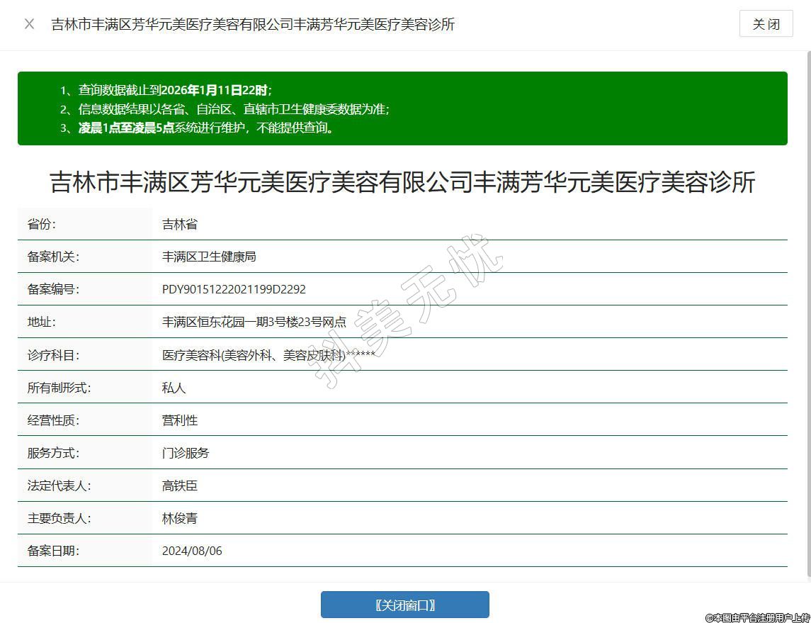 吉林市豐滿區(qū)芳華元美醫(yī)療美容有限公司豐滿芳華元美醫(yī)療美容診所