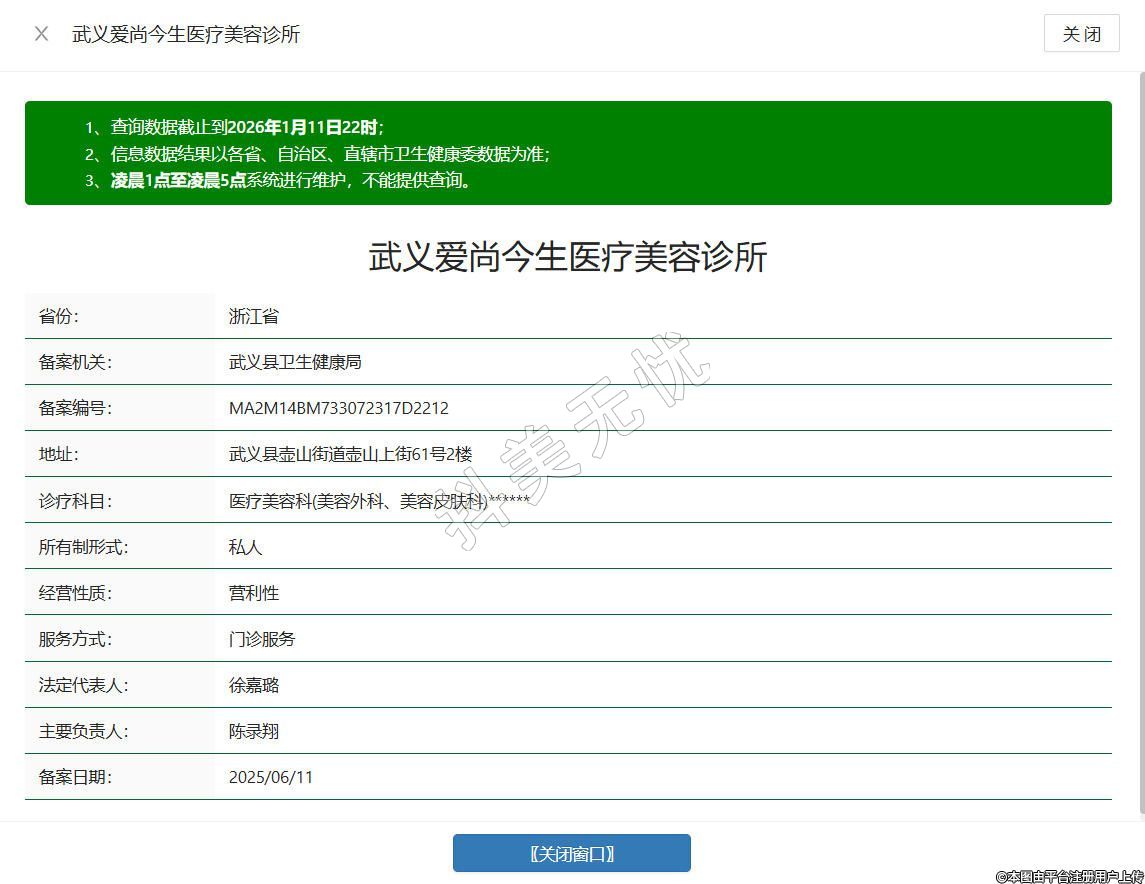 武義愛尚今生醫(yī)療美容診所成立于2021年,位于浙江省金華市武義縣壺山街道壺山上街61號(hào)2樓,是經(jīng)相關(guān)部門批準(zhǔn)設(shè)立的營利性醫(yī)療美容機(jī)構(gòu),持有合法有效的《醫(yī)療機(jī)構(gòu)執(zhí)業(yè)許可證》,合規(guī)開展醫(yī)療美容服務(wù),聚焦醫(yī)療美容科與美容外科核心診療科目,堅(jiān)守醫(yī)療本質(zhì),秉持合規(guī)經(jīng)營理念,實(shí)行明碼標(biāo)價(jià)制度,所有服務(wù)項(xiàng)目及收費(fèi)標(biāo)準(zhǔn)公開透明。