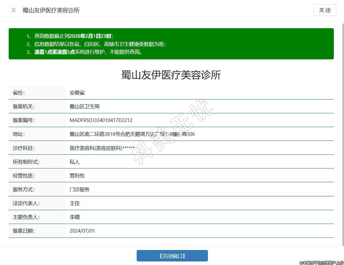 蜀山友伊醫(yī)療美容診所成立于2024年,位于安徽省合肥市蜀山區(qū)南二環(huán)路3818號合肥天鵝湖萬達(dá)廣場1-8幢6-商306,是經(jīng)正規(guī)審批設(shè)立的醫(yī)療美容機構(gòu),環(huán)境整潔舒適,配備標(biāo)準(zhǔn)化診療空間與專業(yè)醫(yī)療設(shè)備,開設(shè)美容外科、美容皮膚科等合規(guī)診療科目,診療范圍均符合醫(yī)療執(zhí)業(yè)許可備案要求,院內(nèi)醫(yī)護(hù)團隊均具備專業(yè)執(zhí)業(yè)資質(zhì),為求美者營造安心、放心的醫(yī)美體驗。