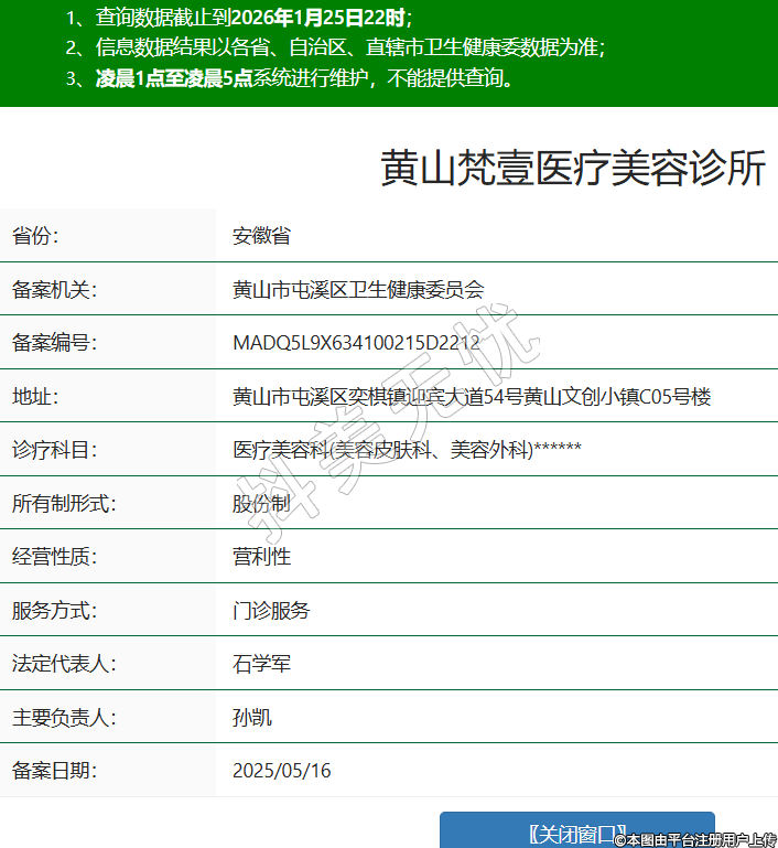 省份:安徽省備案機關:黃山市屯溪區(qū)衛(wèi)生健康委員會備案編號:MADQ5L9X634100215D2212地址:黃山市屯溪區(qū)奕棋鎮(zhèn)迎賓大道54號黃山文創(chuàng)小鎮(zhèn)C05號樓診療科目:醫(yī)療美容科(美容皮膚科、美容外科)******所有制形式:股份制經營性質:營利性服務方式:門診服務法定代表人:石學軍主要負責人:孫凱備案日期:2025/05/16 -