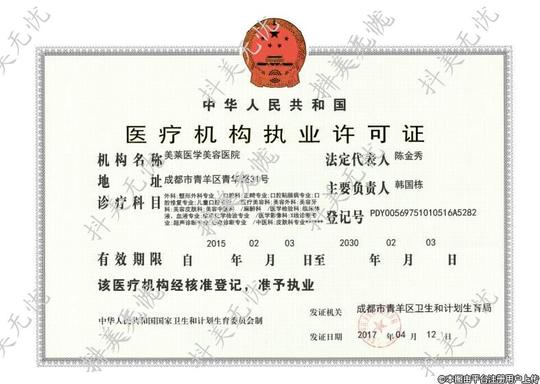 發(fā)證機(jī)關(guān):成都市青羊區(qū)衛(wèi)生和計劃生育局