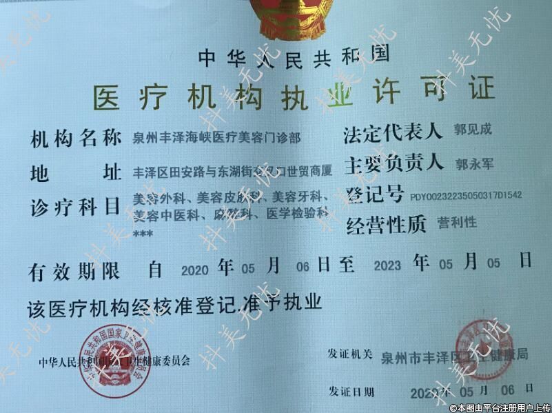 機構(gòu)名稱:泉州豐澤海峽醫(yī)療美容門診部