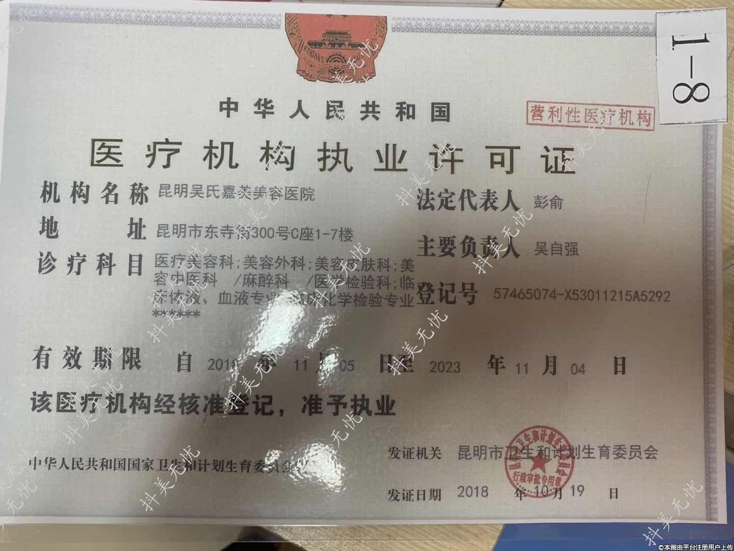 發(fā)證機關(guān):昆明市衛(wèi)生和計劃生育委員會
