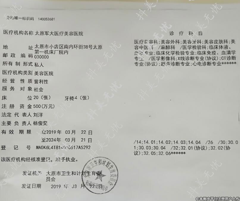 醫(yī)療機(jī)構(gòu)名稱:太原軍大醫(yī)療美容醫(yī)院