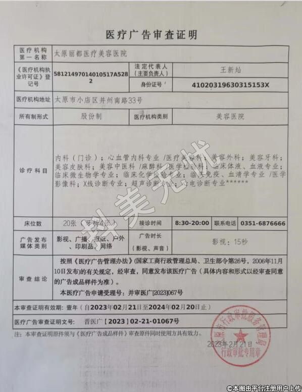 診療科目:內科(門診):心血管內科專業(yè)/醫(yī)療美容科:美容外科:美容牙科:美容皮膚科:美容中醫(yī)科/麻醉科/醫(yī)學檢驗科;臨床體液、臨床微生物學專業(yè):臨床化學檢驗專業(yè),臨床免疫、血清學專業(yè)/醫(yī)學影像科:X線診斷專業(yè):超聲診斷專業(yè);心電診斷專業(yè)******