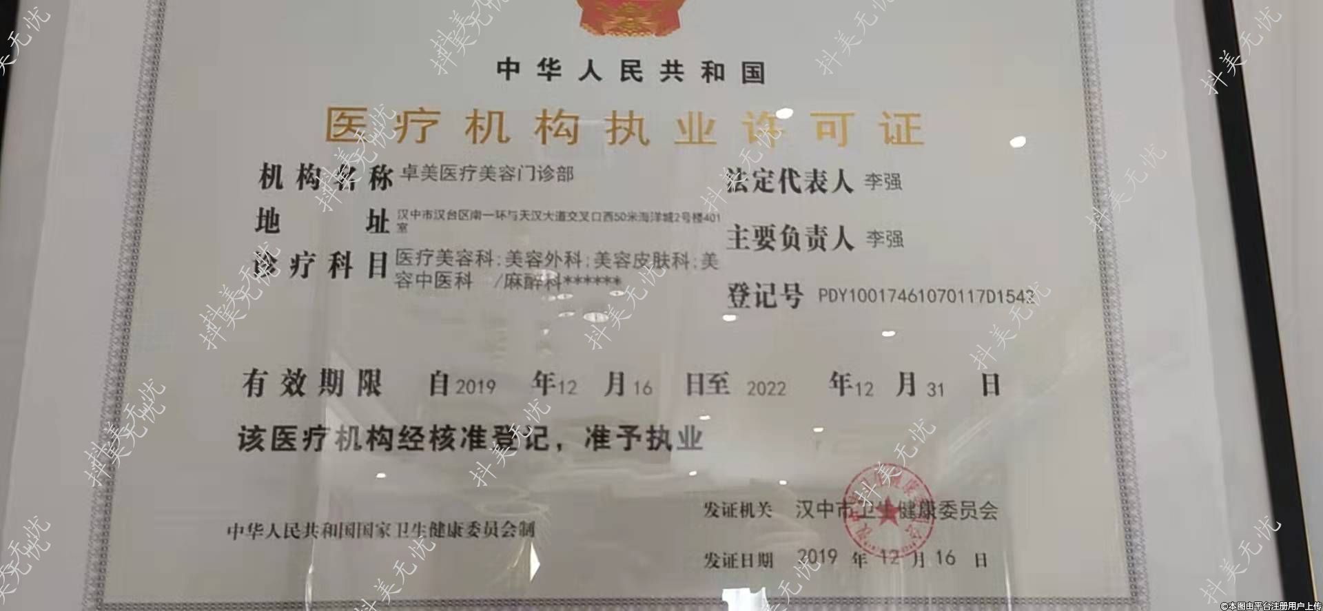 機構(gòu)名稱:漢中卓美整形外科門診部