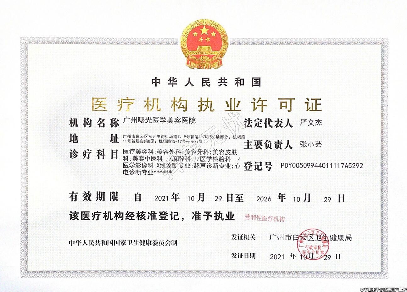 發(fā)證機關(guān):廣州市白云區(qū)衛(wèi)生健康局