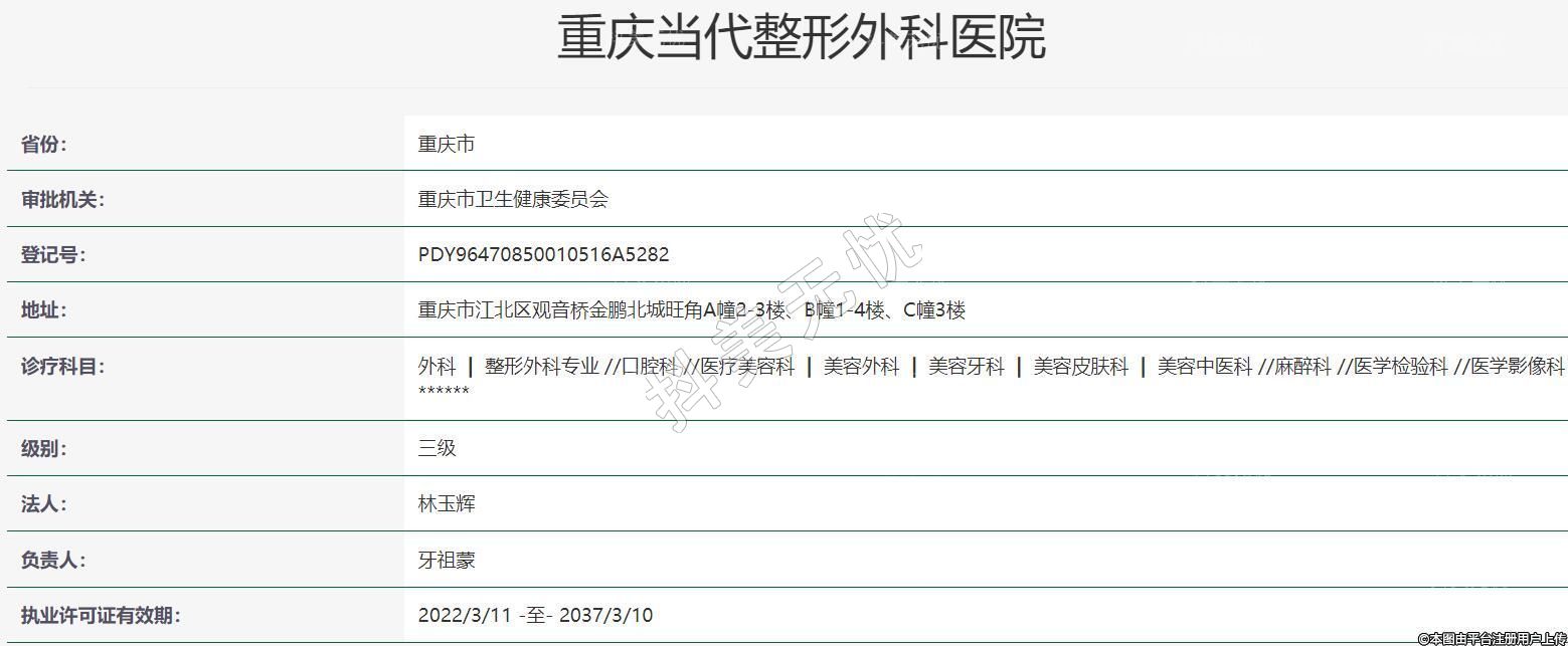 重慶當(dāng)代(三級)整形外科醫(yī)院,5A級醫(yī)療整形醫(yī)院;擁有四級手術(shù)資質(zhì),28項國家級專利技術(shù),20位高級職稱醫(yī)師領(lǐng)銜16大專業(yè)學(xué)組;100余家品牌方正品授權(quán),90項醫(yī)療質(zhì)量標(biāo)準(zhǔn),德國萊茵TUV-SQS認(rèn)證;十?dāng)?shù)載專業(yè)沉淀,塑美更安全!
