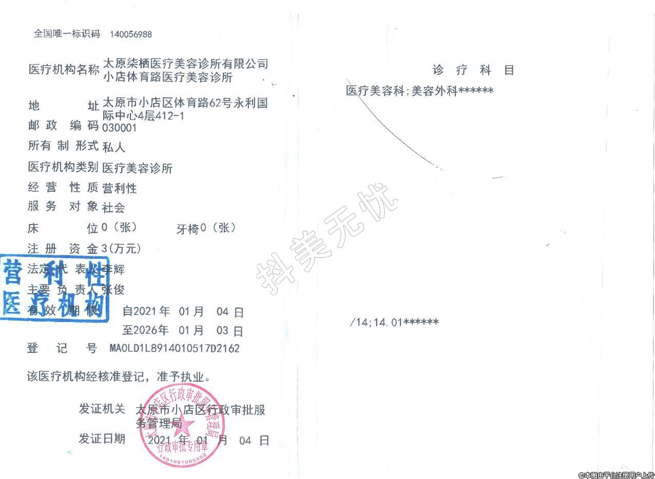 醫(yī)療機(jī)構(gòu)名稱(chēng):太原染棲醫(yī)療美容診所有限公司小店體育路醫(yī)療美容診所
