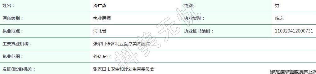 主要執(zhí)業(yè)機(jī)構(gòu):張家口維多利亞醫(yī)療美容醫(yī)院