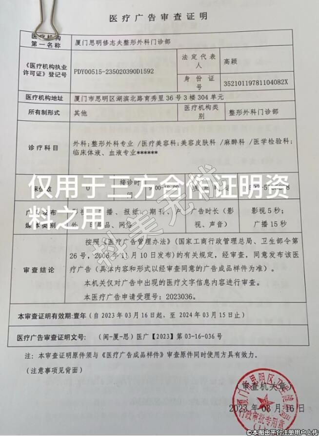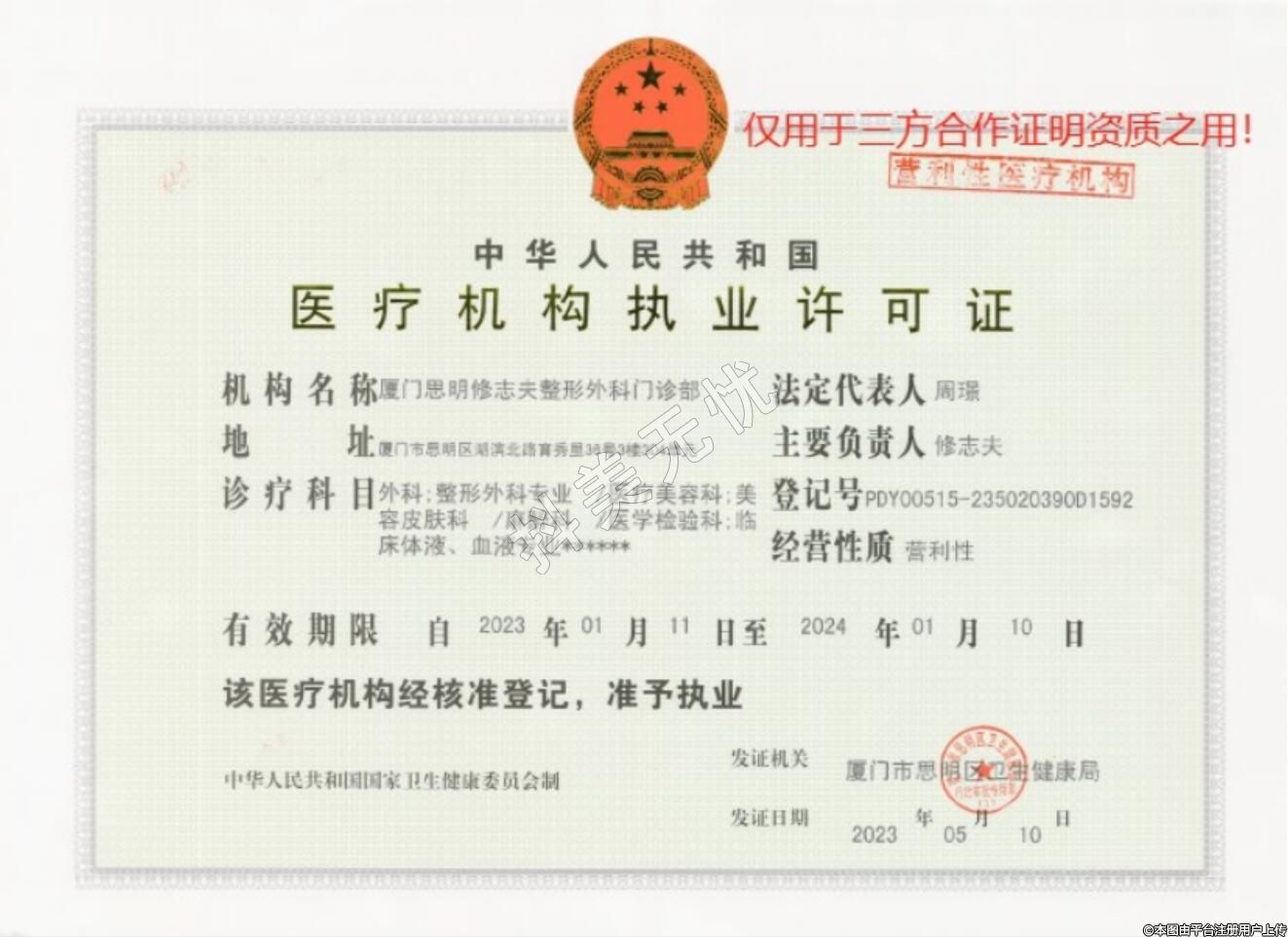 發(fā)證機(jī)關(guān):廈門市思明區(qū)衛(wèi)生健康局
