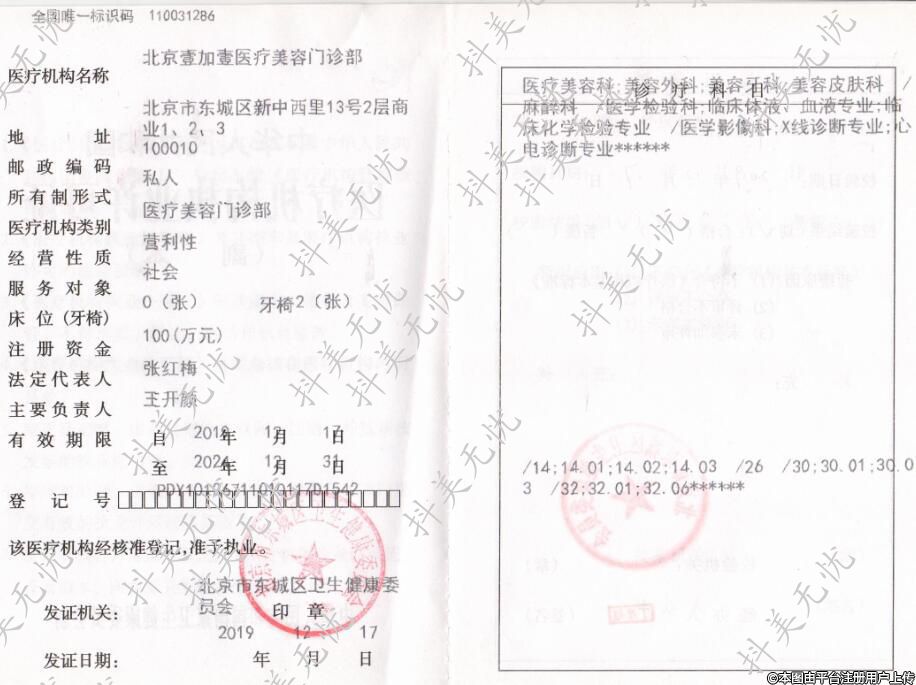 發(fā)證機關:北京市東城區(qū)衛(wèi)生健康委員會
