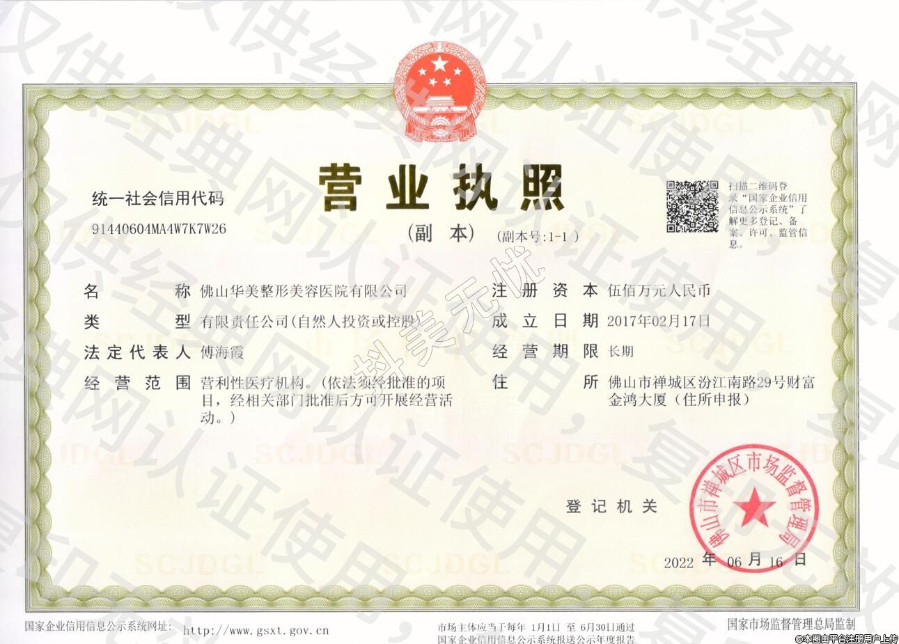 發(fā)證機(jī)關(guān):佛山市增城區(qū)衛(wèi)生健康禺