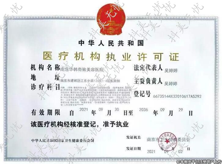 發(fā)證機關:南京市衛(wèi)生健康委員會