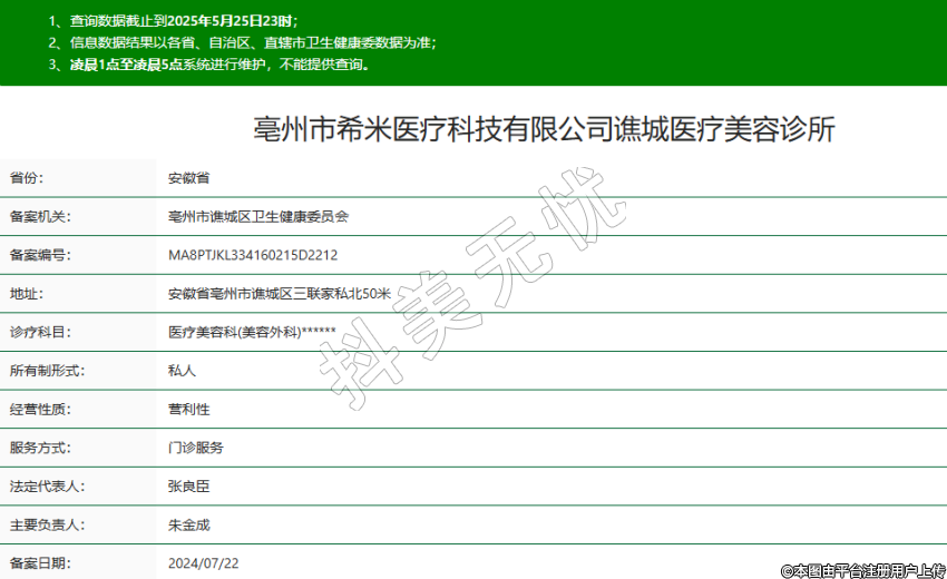 省份:安徽省備案機關:亳州市譙城區(qū)衛(wèi)生健康委員會備案編號:MA8PTJKL334160215D2212地址:安徽省亳州市譙城區(qū)三聯(lián)家私北50米診療科目:醫(yī)療美容科(美容外科)******所有制形式:私人經(jīng)營性質(zhì):營利性服務方式:門診服務法定代表人:張良臣主要負責人:朱金成備案日期:2024/07/22 -