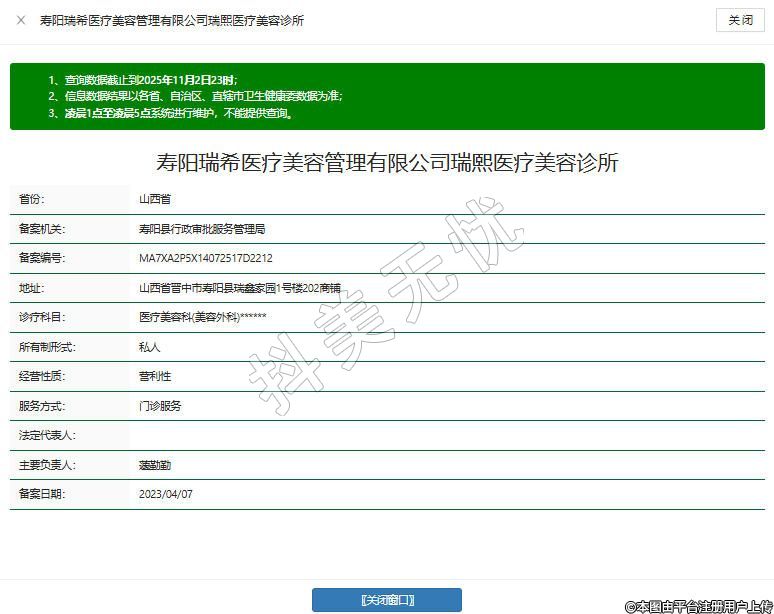 壽陽(yáng)瑞希醫(yī)療美容管理有限公司瑞熙醫(yī)療美容診所