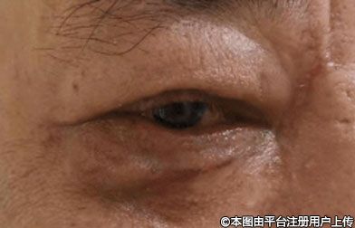 表現(xiàn):眼周無死角的動(dòng)態(tài)、靜態(tài)皺紋,嚴(yán)重的眶內(nèi)凹陷,上瞼皮膚松垂導(dǎo)致的三角眼,眼袋膨出,淚溝凹陷,下瞼皮膚松弛等