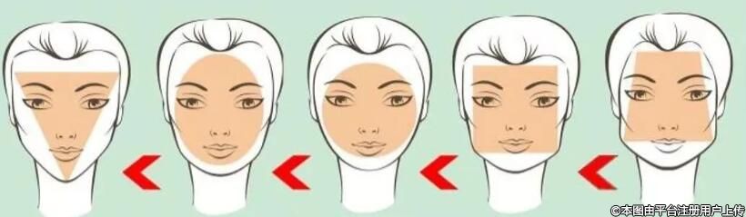 瓜子、鵝蛋、圓、方形、梨形臉,從左往右,臉看起來越來越大。