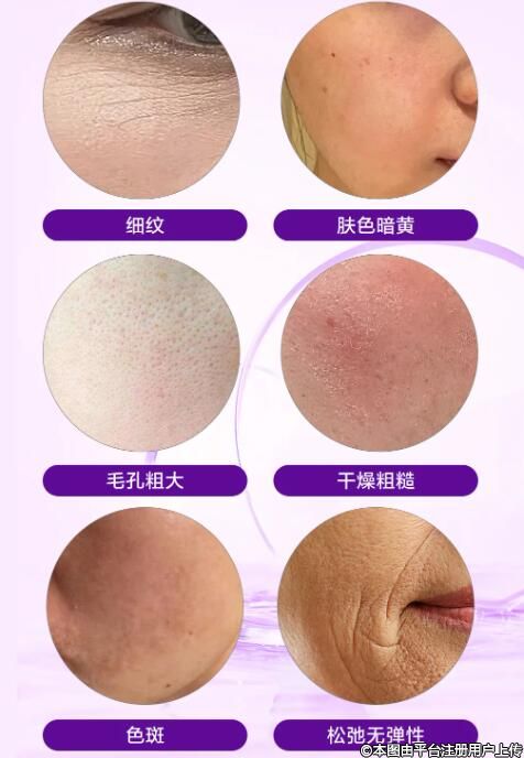 膚質(zhì)的改變:皮膚粗糙、毛孔粗大、膚質(zhì)灰暗無(wú)光澤、松弛、下垂、皺紋等;