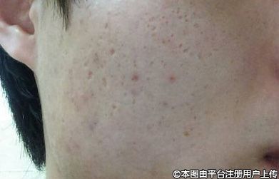 深層痘坑及瘢痕、毛孔粗大、細(xì)紋干紋。