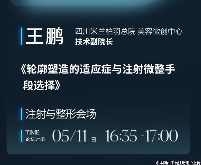 回顧以往美沃斯大會,參會人數(shù)屢創(chuàng)新高,而本次大會自定檔發(fā)布以來便備受行業(yè)關(guān)注,大會共分11個主會場,將從外科、皮膚、注射、抗衰、運營、醫(yī)美標準化等多個主題分會場進行內(nèi)容切入,全方位研究探討。四川米蘭柏羽總院美容微創(chuàng)中心技術(shù)副院長王鵬受邀于5月11日舉行的注射與整形會場上分享主題——《輪廓塑造的適應癥與注射微整手段選擇》,將從微整審美、前沿技術(shù)等多層面解析輪廓美學的創(chuàng)新塑美趨勢,展示求美者通過微整手段實現(xiàn)的顯著變化。