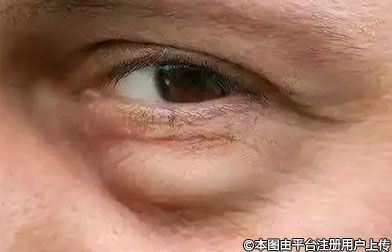 3、當(dāng)眼睛往上看時,下眼皮是否會出現(xiàn)一坨明顯鼓起、手感軟泡的三角區(qū)。