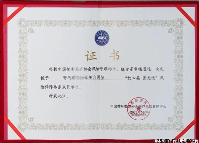 近日,青島諾德醫(yī)學(xué)美容醫(yī)院憑借良好口碑、專業(yè)技術(shù)、規(guī)范標準,從全國眾多醫(yī)美機構(gòu)中脫穎而出,正式成為中國整形美容協(xié)會“放心美 醫(yī)無憂”風(fēng)險保障體系成員單位!