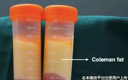 離心后將底層的血水去除后獲得的脂肪為科爾曼脂肪(coleman fat),上層為顏色較淺的為低密度脂肪,下層顏色較深的為高密度脂肪。