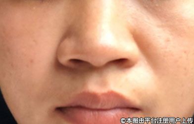 1、鼻翼外擴(kuò)、鼻翼組織中度肥厚,但是鼻孔大小和鼻檻基本正常: