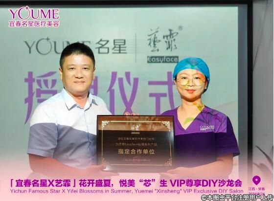 沙龍現(xiàn)場,藝霏品牌方代表徐總上臺(tái)授牌,授權(quán)宜春名星醫(yī)療美容為藝霏Easyface品牌系列產(chǎn)品指定合作單位,作為“三正規(guī)·放心美”醫(yī)美機(jī)構(gòu),堅(jiān)持“正規(guī)機(jī)構(gòu)、正規(guī)醫(yī)生、正規(guī)產(chǎn)品”,以誠信經(jīng)營、高質(zhì)服務(wù)、高性價(jià)比的經(jīng)營理念,為當(dāng)?shù)蒯t(yī)美消費(fèi)者帶來放心安全的變美體驗(yàn)。