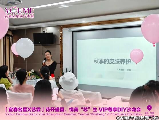 隨后,藝霏品牌方——胡莉老師上臺(tái)為我們分享《秋季的皮膚養(yǎng)護(hù)》。她還表示:“在忙碌的生活中,運(yùn)動(dòng)、冥想、閱讀、感恩,確實(shí)是我們自我療愈很好的方法。除此之外呢,美膚也是一種提升幸福感的方式。作為深耕皮膚領(lǐng)域十多年的民族品牌,藝霏一直專注于肌膚健康美學(xué)研究,不斷夯實(shí)抗氧化地位。相信宜春名星與藝霏的強(qiáng)強(qiáng)攜手,能更好改善臨床中遇到的【敏炎斑衰】等皮膚問題,提升顧客的皮膚美容滿意度。”