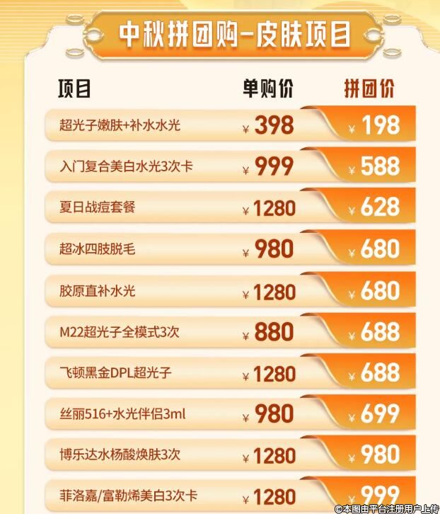 你還在為高昂的醫(yī)美費用望而卻步嗎?現(xiàn)在,有了儷人中秋拼團購,美麗變得觸手可及!