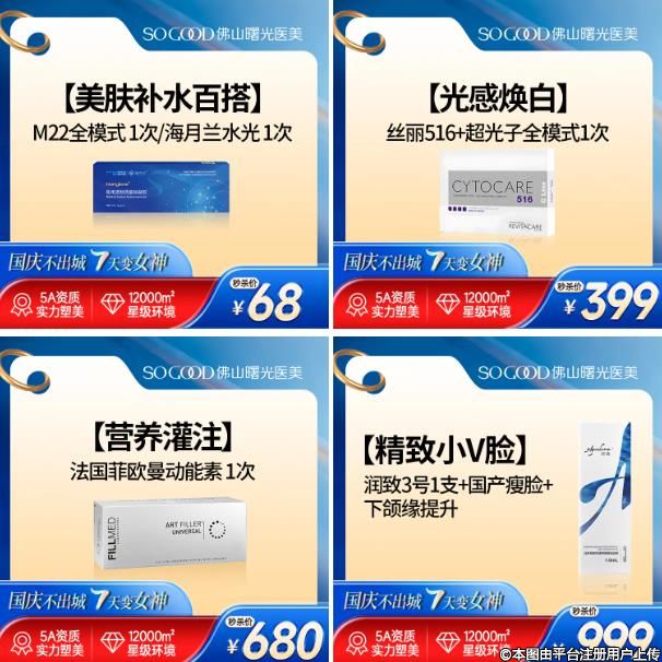 佛山曙光金子整形八大美膚組合卡低至68起,國慶限時福利來啦