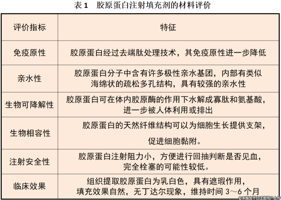 關(guān)于膠原蛋白注射填充劑的材料評價,大家可以收藏這張表。