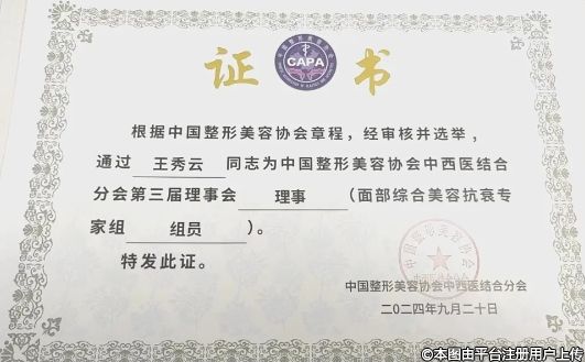 喜報(bào)|恭賀太原射頻抗衰專家王秀云被聘為中國整形美容協(xié)會中西醫(yī)結(jié)合分會理事會理事