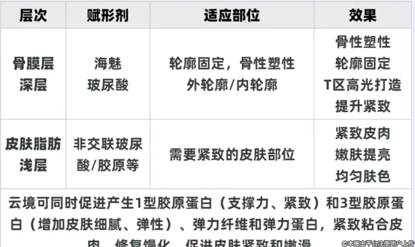 主要組成為25um左右粒徑的羥基磷灰石CaHA微球,能高效且溫和地促進(jìn)用于支撐和緊致的I型膠原蛋白、和用于皮膚細(xì)膩柔嫩的I型膠原蛋白再生,彈性纖維和彈性蛋白增加實(shí)現(xiàn)打哪長(zhǎng)哪,有序再生。