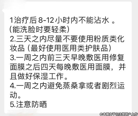 這期間工作人員會給出做完醫(yī)美之后的保養(yǎng)建議,我對什么是械字號發(fā)出了疑問,工作人員又給解釋了下。出來后工作人員不放心,又告訴我一遍,最后還在項目全都結(jié)束用文字的方式再囑咐一遍,很負(fù)責(zé)。