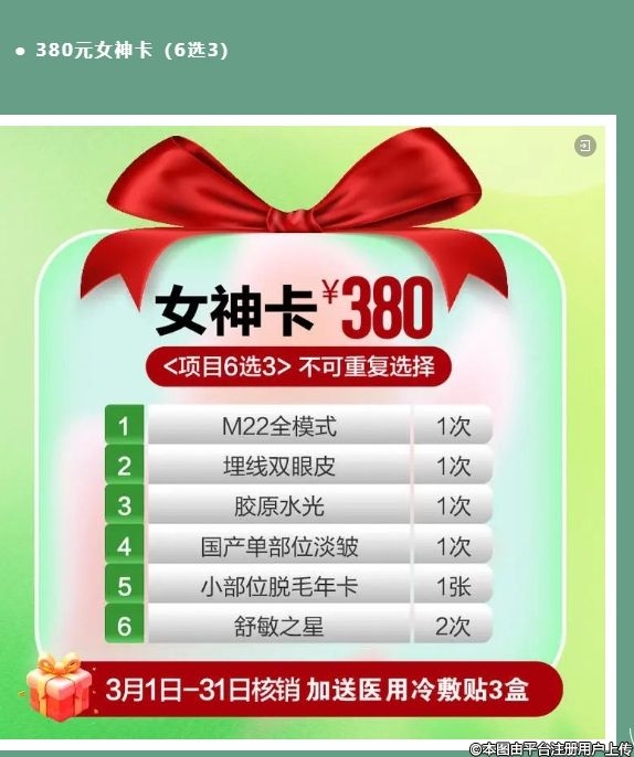 380元女神卡(6選3)