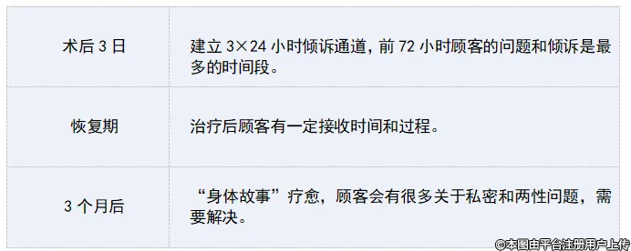 ?。?)制作“術(shù)前檢查”“麻醉”、“治療方法”、“恢復(fù)階段”……了解顧客疑問點(diǎn)和顧慮點(diǎn)。