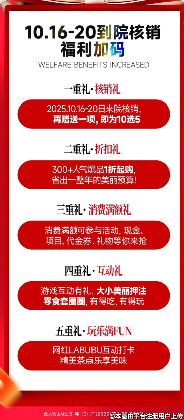 10月16-20日來院核銷門票,項目再加送1項,從10選4升級為10選5?。ㄕ酆舷聛?,平均不到60塊錢薅1個爆款項目,做夢都會笑醒~)