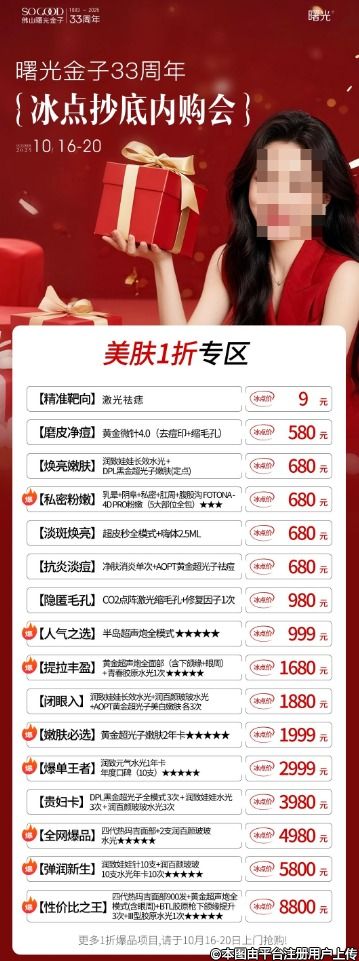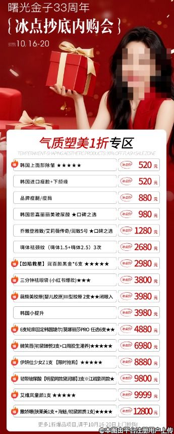 33周年超級千萬補貼派送,平時不舍得買的大項目:抗衰年卡、貴婦卡、全臉/形體塑形、眼鼻胸整形,這次直接抄底1折價拿下!